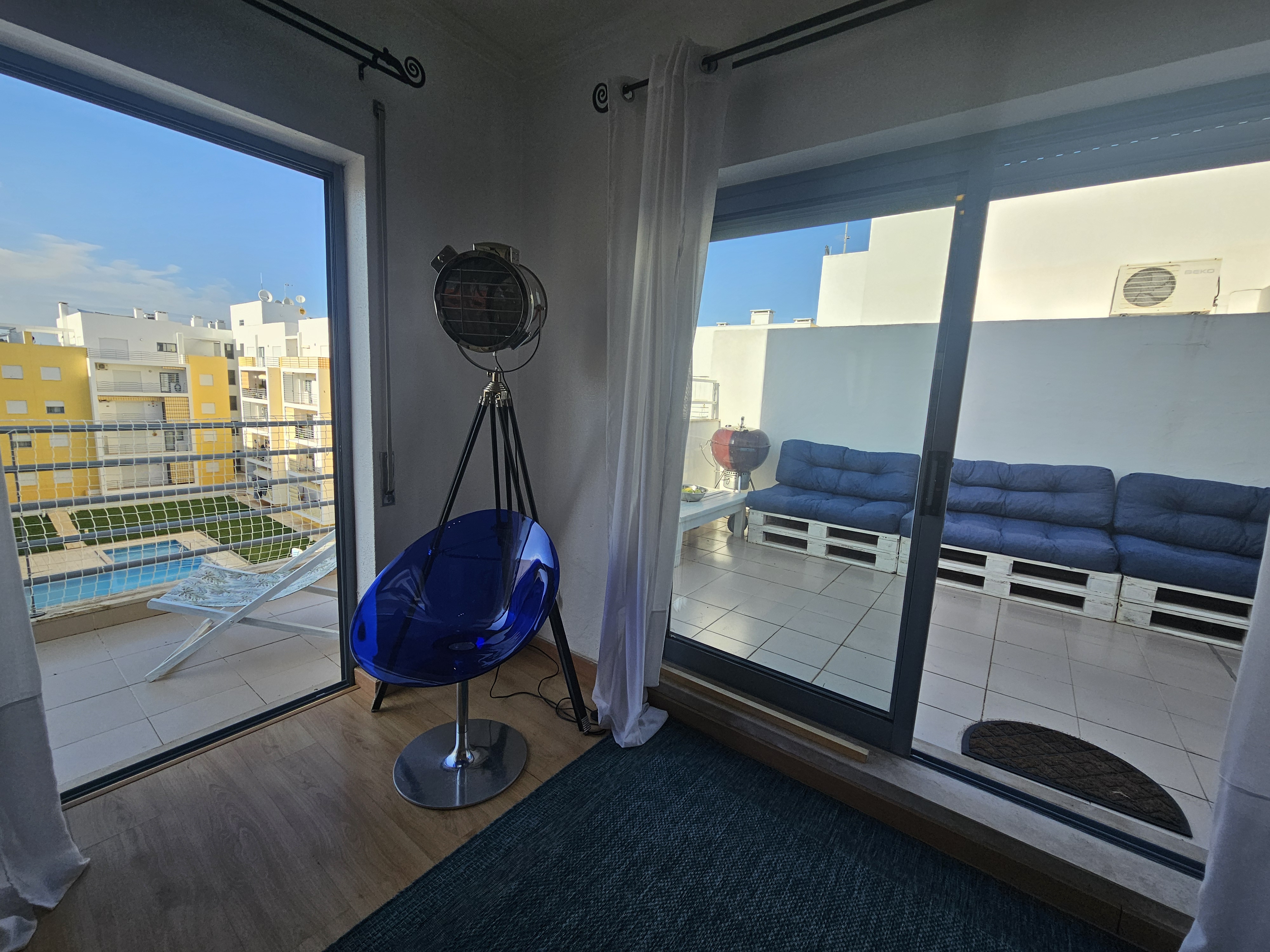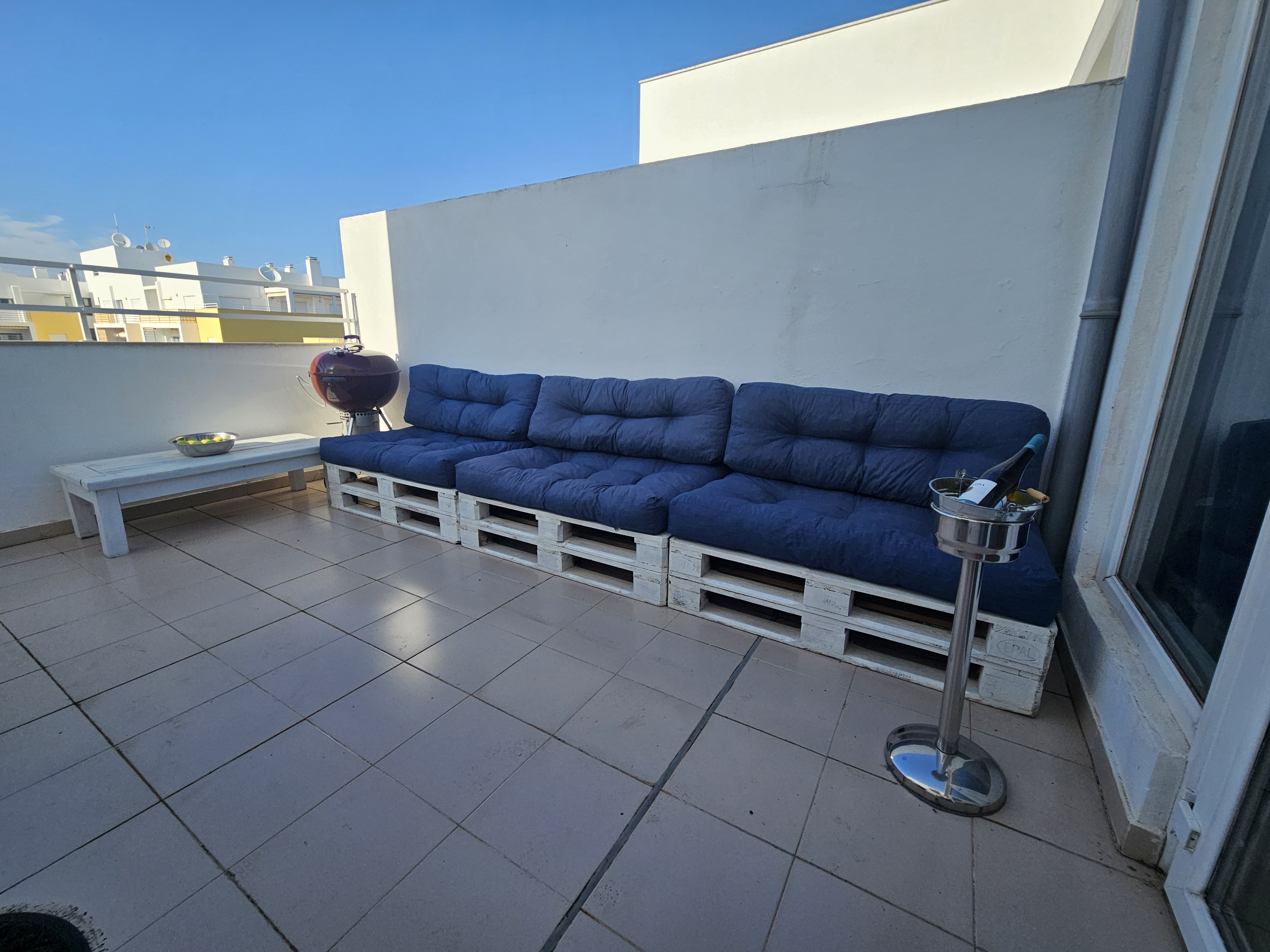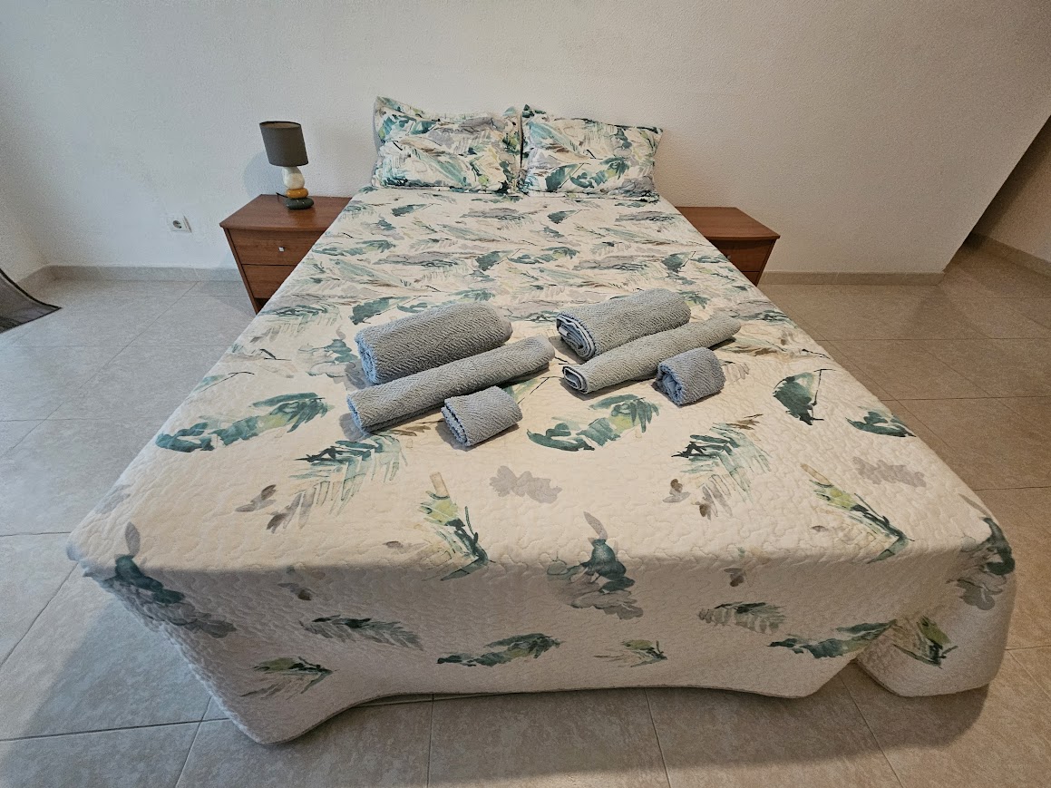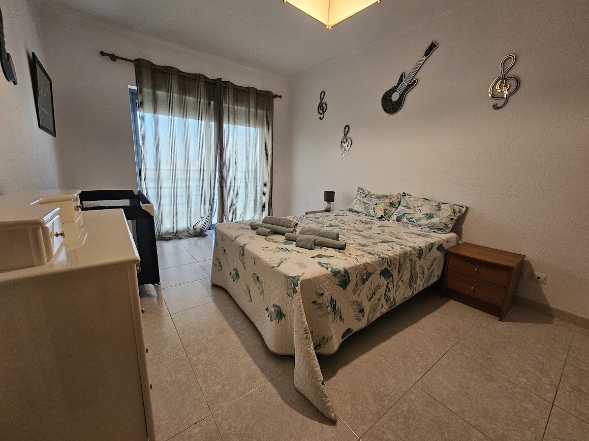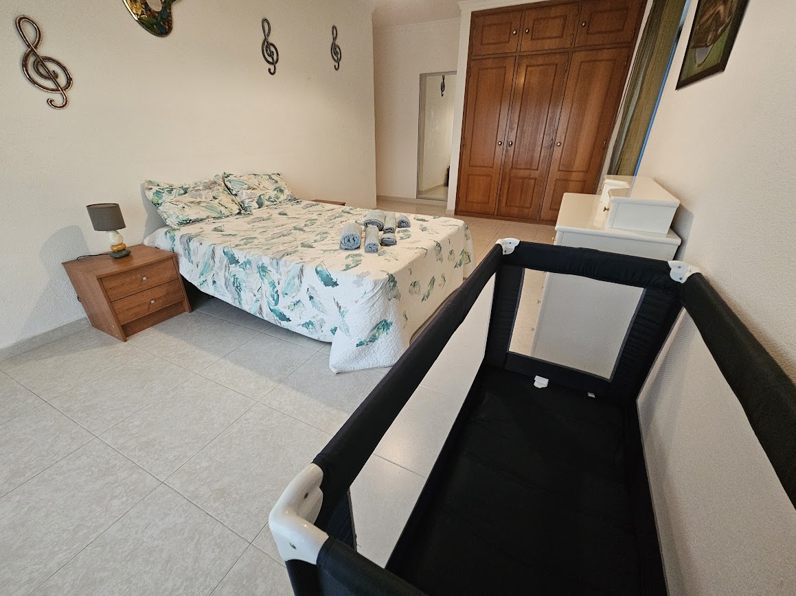 Este T3 situa-se no 4º andar do edifício, é composto por hall, sala espaçosa com 2 sofás, um deles faz cama e com óptimo terraço, varandas, sendo parte de um deles fechada com zona de para se usufruir de refeições e lazer, 3 quartos com cama de casal, 1 em suite e, uma casa de banho com poliban. Dá para 8 pessoas, mais bébés.