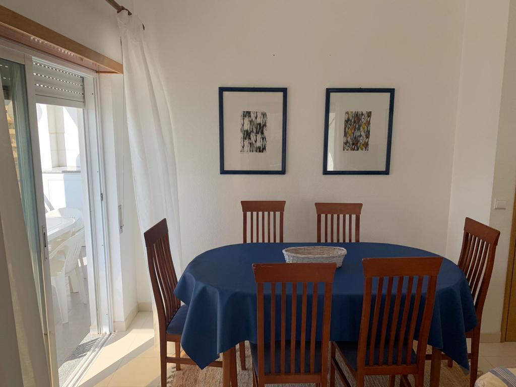 A varanda com vista mar possui mesa e cadeiras, para refeições no exterior.